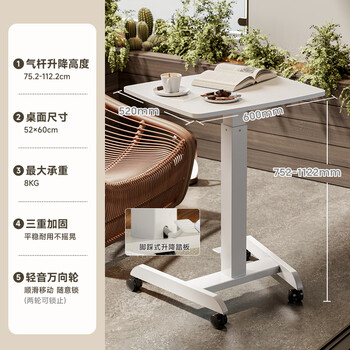Brateck北弧床边桌气动可升降桌可移动电脑桌书桌沙发茶几边桌置物架K150
