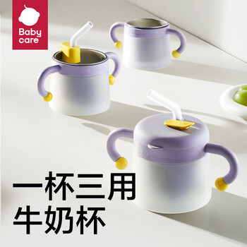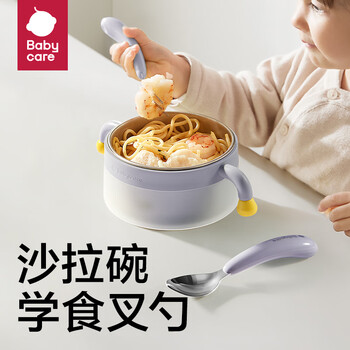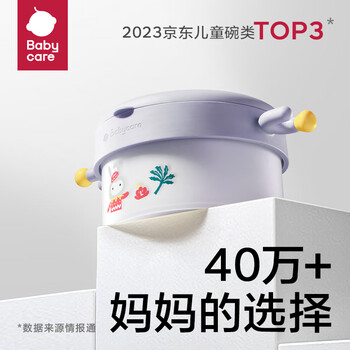 babycare萌萌兔餐具礼盒 儿童辅食碗学饮杯水杯注水保温碗学习叉勺5件套