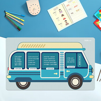 BUBM 学习桌垫 学生写字桌面垫皮质防泼水书桌垫儿童记忆单位换算表鼠标垫680*400mm 蓝色