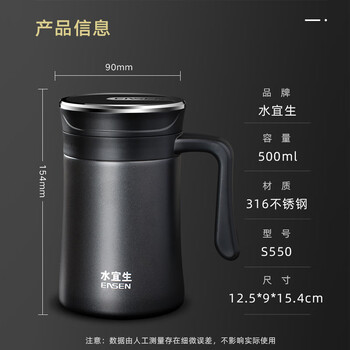 水宜生保温杯男士弱碱性带手柄办公杯带把手水杯抑菌商务养生杯礼盒装