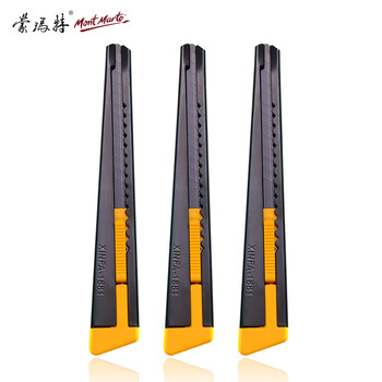 蒙玛特(Mont Marte)美工刀3把 自动锁铅笔刀耐用裁纸刀壁纸刀切割刀 防锈可折断多刀片开箱刀P-NX-002-01