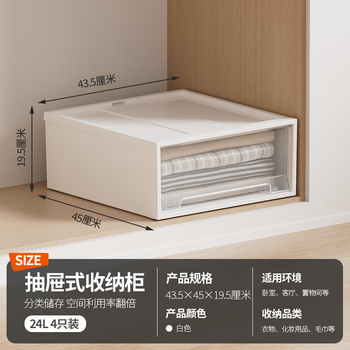 禧天龙抽屉式分隔收纳盒家用衣柜收纳神器大容量储物盒 24升4个装