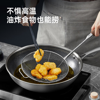 炊大皇 304不锈钢漏勺线漏捞勺漏网火锅大漏勺油炸勺子笊篱防烫手柄大号
