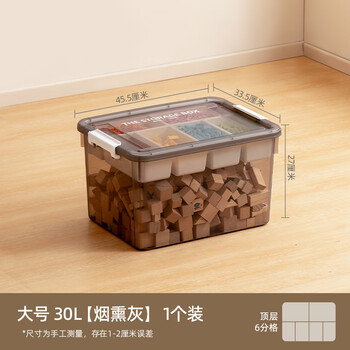 禧天龙乐高收纳盒儿童积木磁力片储物盒大容量玩具分格整理箱30升透明灰