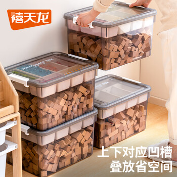禧天龙乐高收纳盒儿童积木磁力片储物盒大容量玩具分格整理箱30升透明白