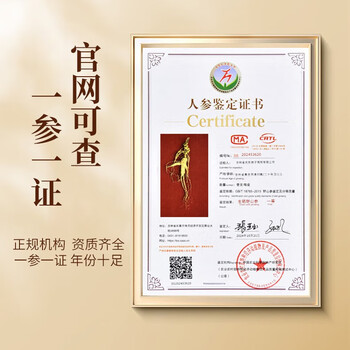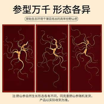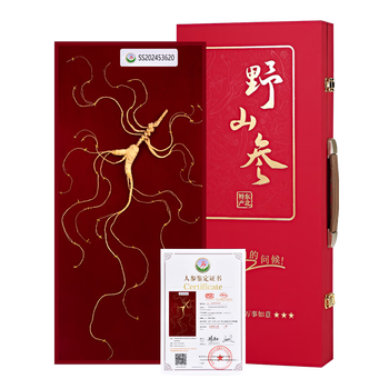仙草至尊 20年以上一等野山参约12克 长白山人参带鉴定证书滋补品年货礼盒