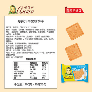 爱莲巧俄罗斯进口大头娃娃饼干牛奶味饼干30g*30