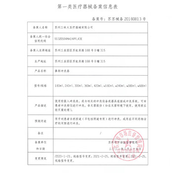 医疗器械注册证编号或者备案凭证编号 苏苏械备20180813号