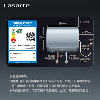 卡萨帝(Casarte)80升【CJ5】储水式电热水器家用超薄钛金双胆扁桶型短款速热大水量一级能效CEC8005-CJ5U1