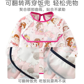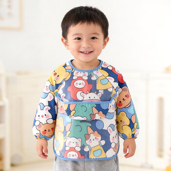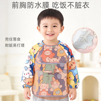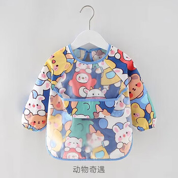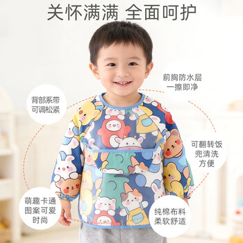 9i9儿童吃饭罩衣长袖防水纯棉婴儿围兜画画衣围裙饭衣可调A261动物
