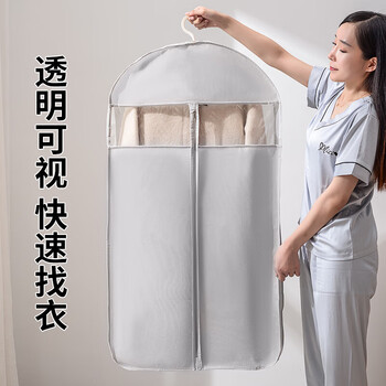 JEKO&JEKO衣服防尘罩防尘袋5件套大衣羽绒服衣物收纳袋透明衣罩挂衣袋灰色