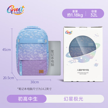 Gmt for kids初高中生书包小学生大容量背包中学生护脊减负双肩包5-6年级女紫