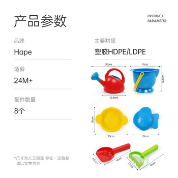 Hape(德国)男孩女孩玩雪工具挖土玩沙戏水玩具乐享沙滩套装礼物 E8178