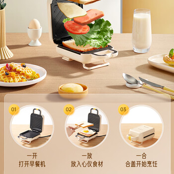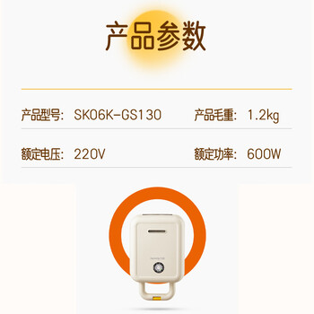九阳(Joyoung)早餐机 三明治机多功能家用小型华夫饼烤面包加热吐司神器 SK06K-GS130