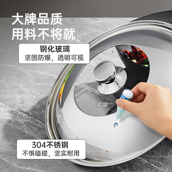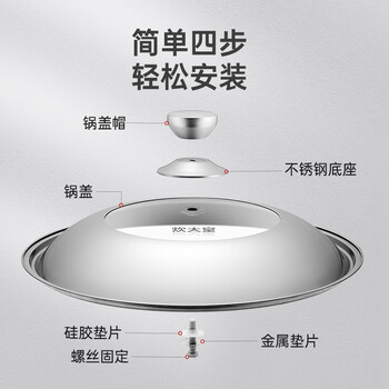 炊大皇 锅盖 304不锈钢组合盖锅盖玻璃盖炒锅盖 透明可视防爆耐摔30cm