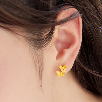 六福珠宝 黄金耳钉实心蝴蝶足金耳饰 计价 L07TBGE0015 约2.17克