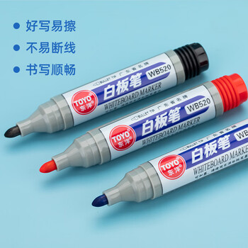 东洋(东洋)WB520可加墨白板笔、可擦教师用水性黑板笔画板写字易擦写粗头大头记号笔12支/盒 /黑色