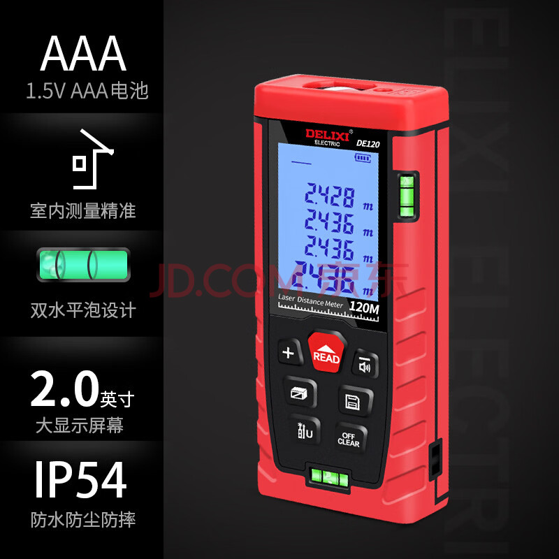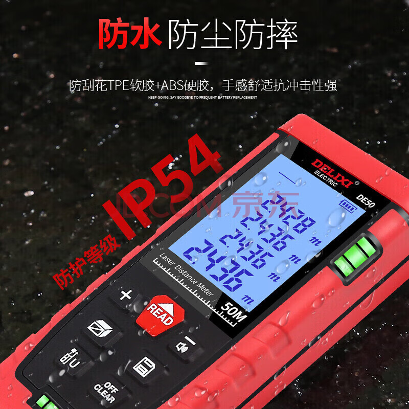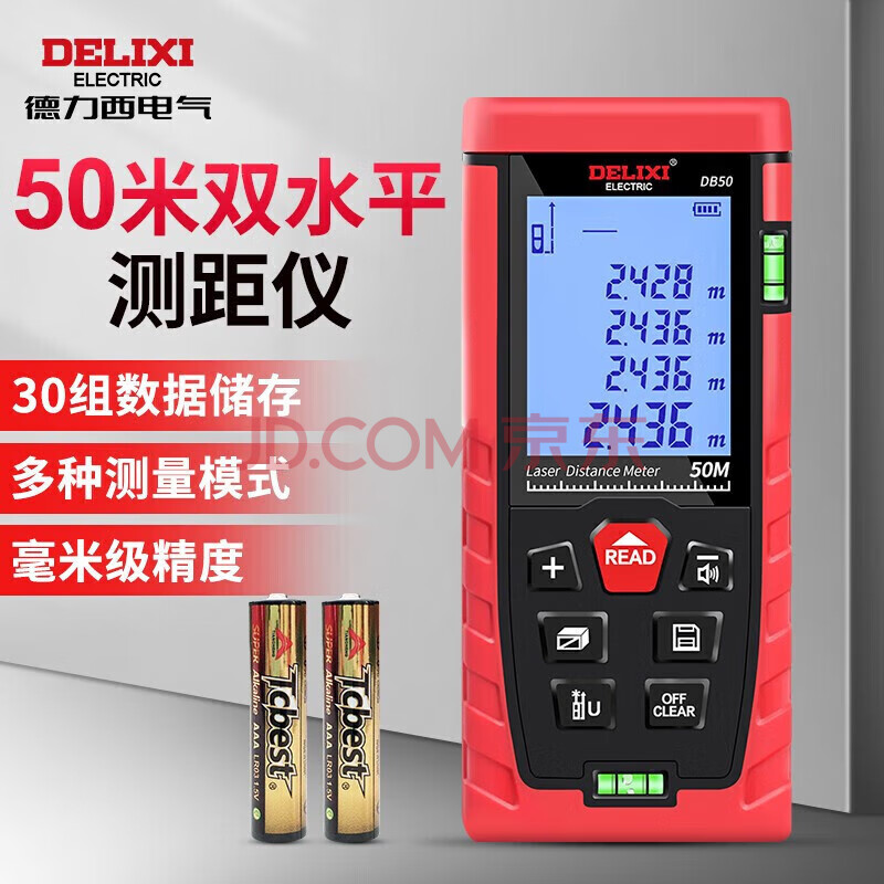 商品相册:德力西电气测距仪高精度激光红外线量房仪家用电子尺DB系列双水平泡50米第1张/共4