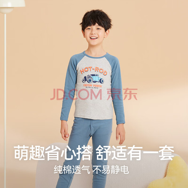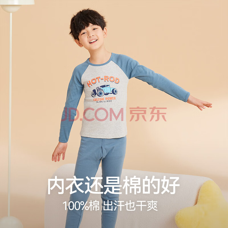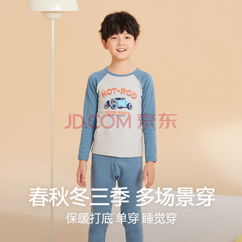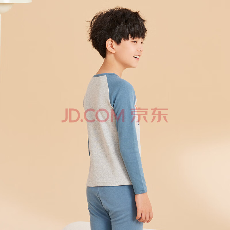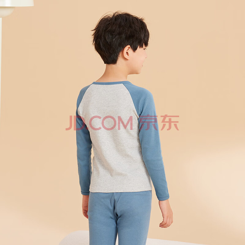 商品相册:红豆儿童纯棉内衣套装男女童秋衣秋裤秋冬保暖低领棉毛衫M1251灰蓝160第