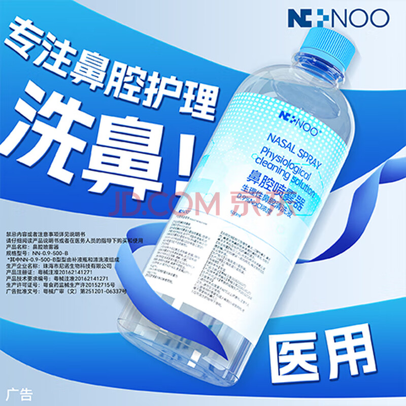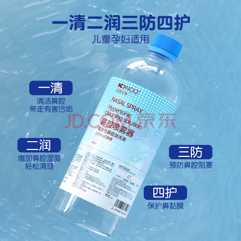 商品相册:尼诺高渗盐水儿童洗鼻鼻腔清洗液成人海盐水洗鼻液500ML*6瓶第
