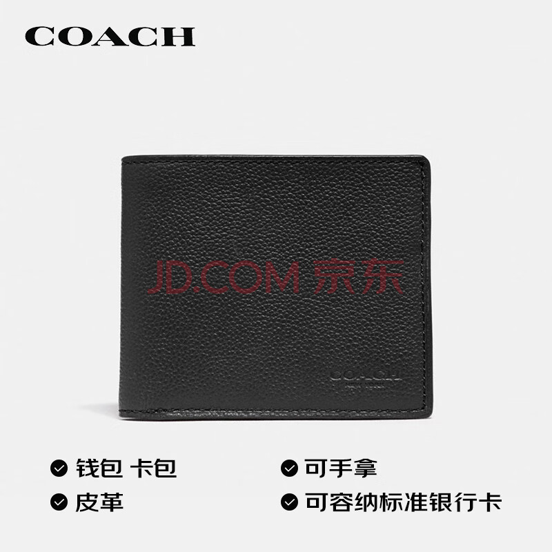 商品相册:蔻驰(COACH)【品牌直供】男士短款折叠牛剖层革钱包卡包黑色67630礼物第