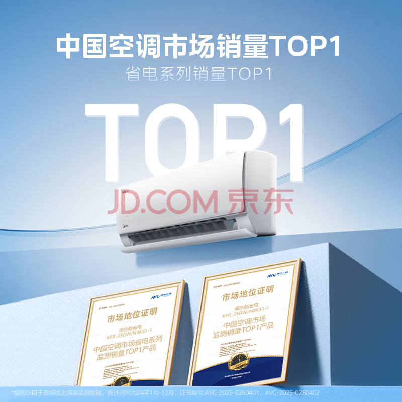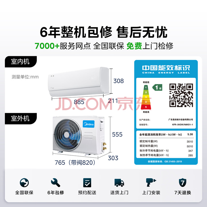 商品相册:美的空调 酷省电 大1.5匹 新一级能效变频卧室节能 纯铜管 卧室空调挂机KFR-35GW/N8KS1-1第