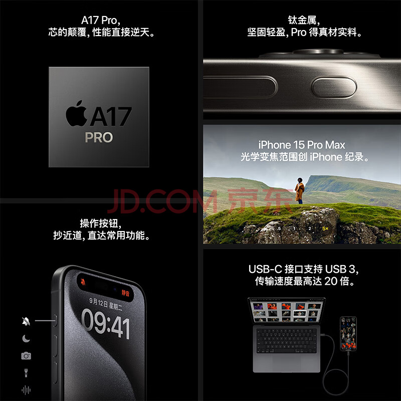 商品相册:Apple/苹果 iPhone 15 Pro Max (A3108) 256GB 蓝色钛金属 支持移动联通电信5G 双卡双待手机第