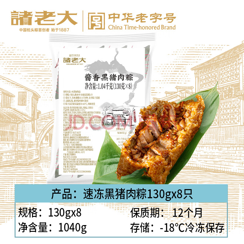 商品相册:诸老大黑猪肉速冻粽子130g*8只共2.08斤中华老字号湖州特产生鲜早餐粽第