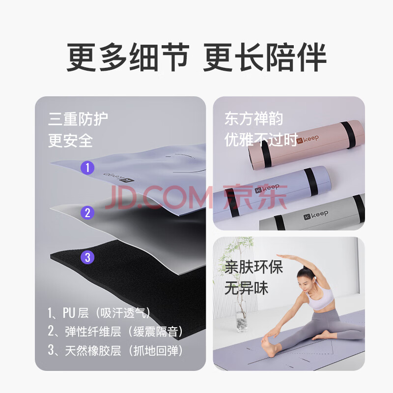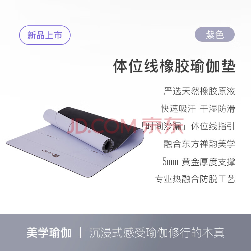 商品相册:Keep天然橡胶专业防滑女男家用健身地垫辅助体位线瑜伽垫 藕荷紫第