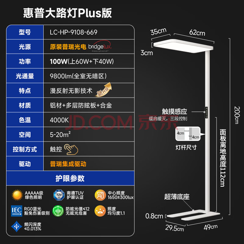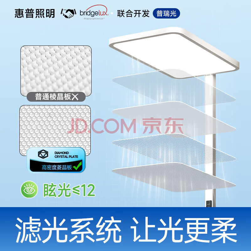 商品相册:惠普近视防控普瑞无蓝光学生学习阅读台灯落地儿童卧室床头护眼大路灯第