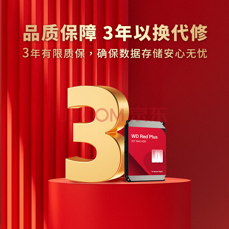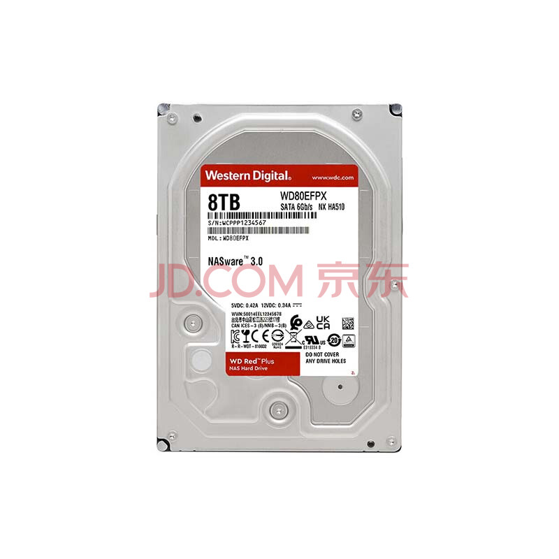 商品相册:西部数据(WD)NAS机械硬盘 WD Red Plus 西数红盘 8TB 5640转256MB SATA CMR垂直 NAS专用硬盘 3.5英寸 WD80EFPX第