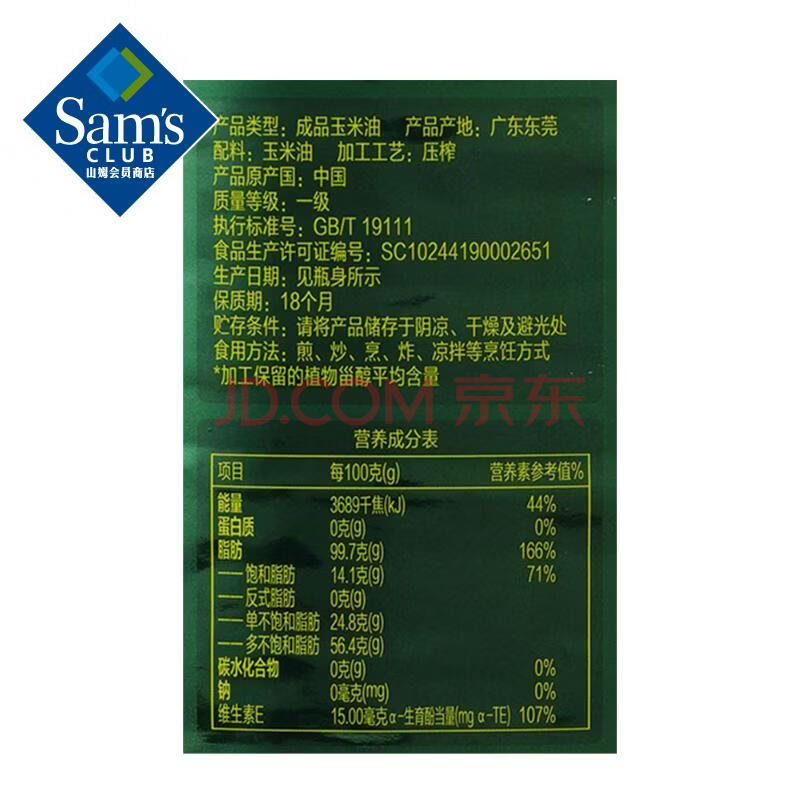商品相册:Member's Mark 零反式脂肪玉米油 5L 5L*1桶第