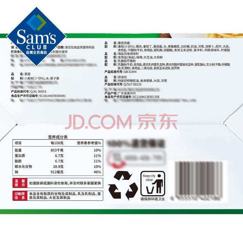 商品相册:意式经典番茄肉酱面 1.374kg(6包入) 1.374kg*1盒第
