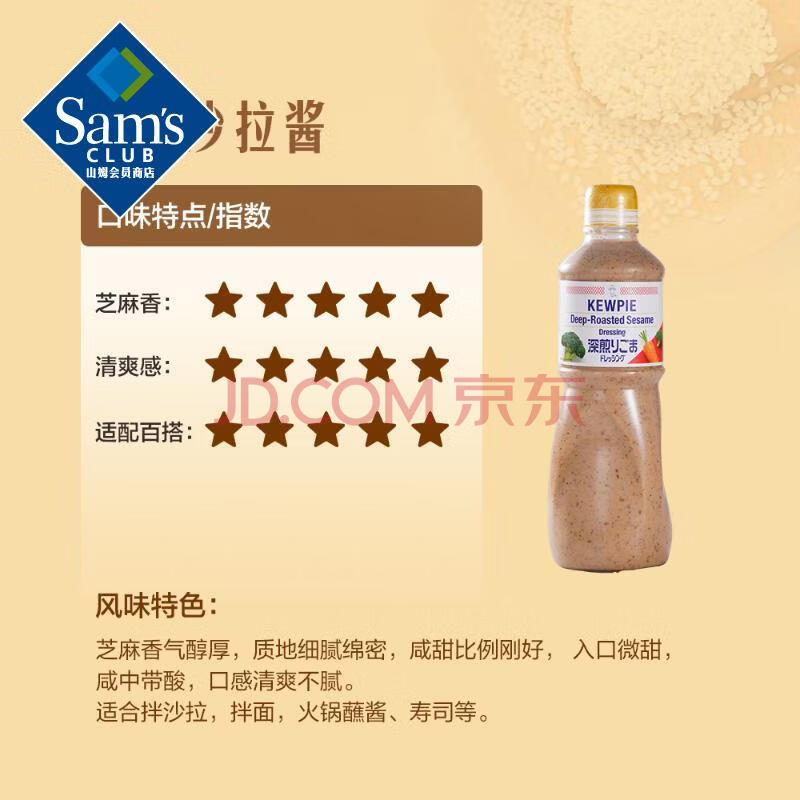 商品相册:丘比(KEWPIE) 芝麻沙拉酱(复合调味料) 1L 1L第