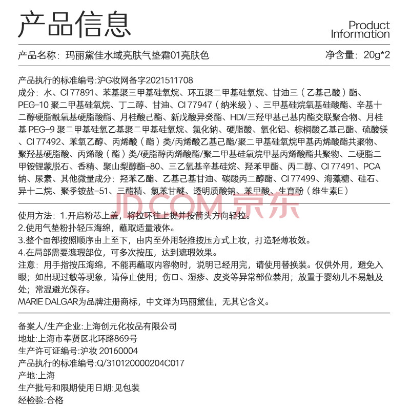 商品相册:玛丽黛佳无感大师气垫霜粉底水润遮瑕底妆混油皮干皮01第1张/共6