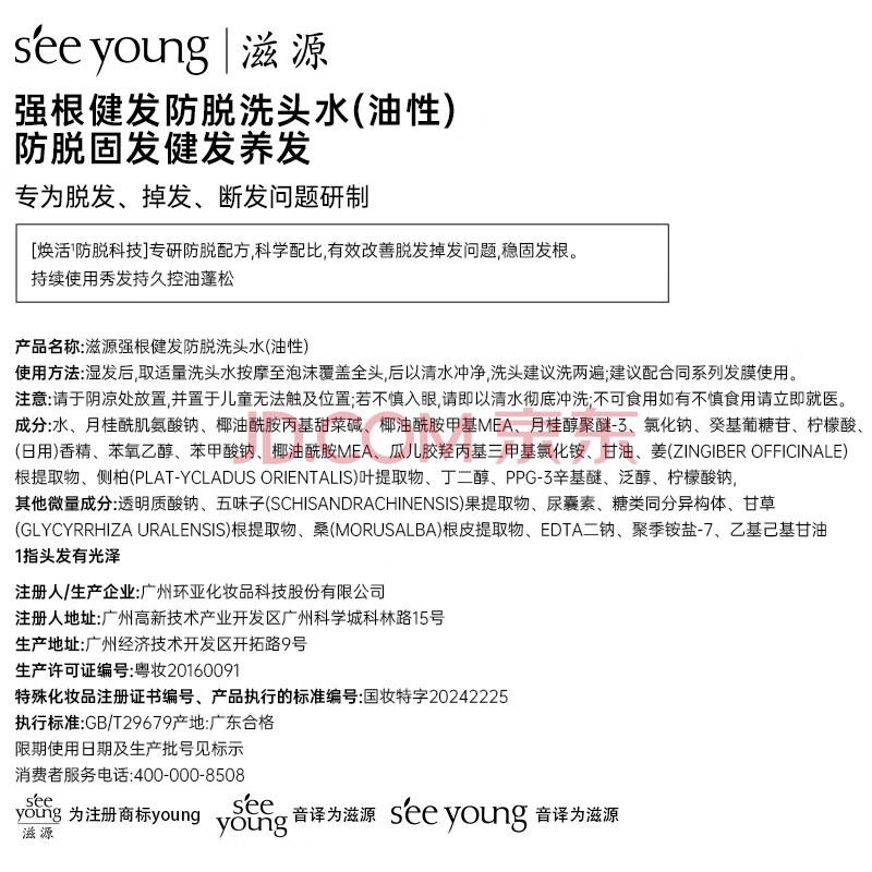 商品相册:滋源【云旗】生姜防脱固发洗发水侧柏叶无硅油强韧修护男女士535ml第