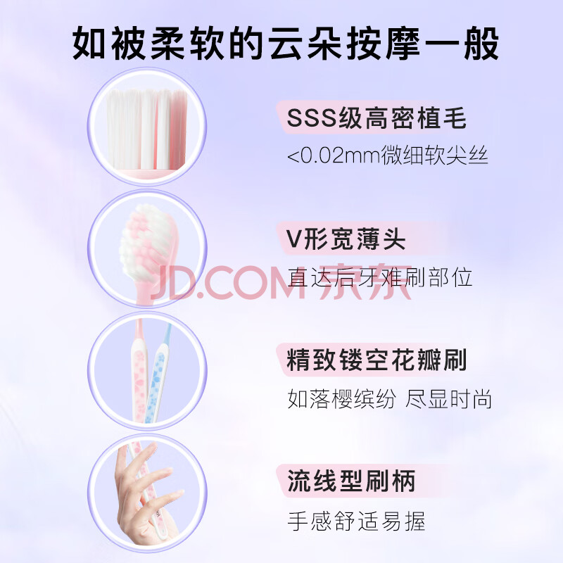 商品相册:舒客宽头樱巧牙刷6支装V型宽薄刷头超软毛护龈成人牙刷新老随机第