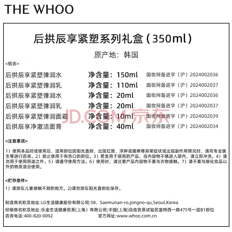 商品相册:后Whoo拱辰享紧塑水乳礼盒6件补水紧致化妆品护肤品套装生日礼物女第1张/共5