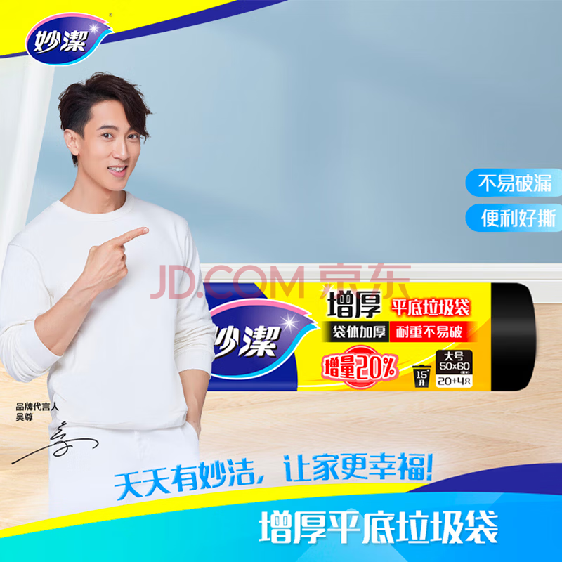 商品相册:妙洁平口垃圾袋黑色50*60cm24只单面1.0丝点断式大号厨房用第