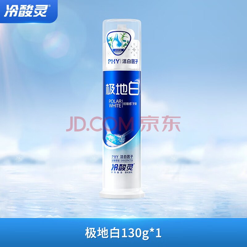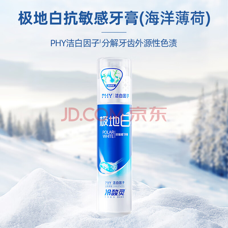 商品相册:冷酸灵极地白泵式牙膏抗敏感美白牙齿海洋薄荷香 130g【吴磊推荐】第