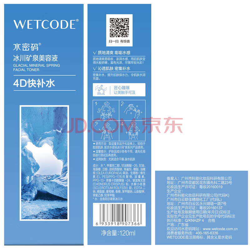 商品相册:水密码冰川矿泉爽肤水美容液120ml化妆水湿敷水保湿补水锁水第
