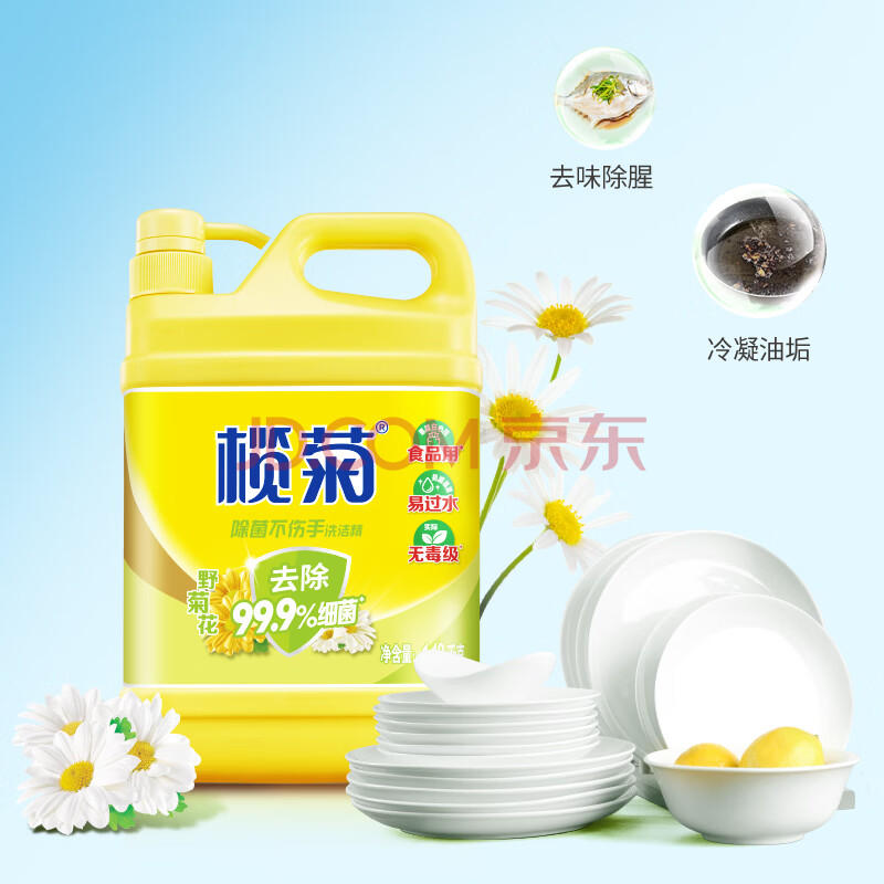 商品相册:榄菊野菊花不伤手洗洁精1.18kg/瓶 食品用级别 蔬果洗涤去油祛味第