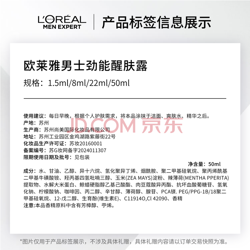 商品相册:欧莱雅男士专用劲能醒肤露50ml补水保湿乳液淡纹男士护肤品礼物送男友第