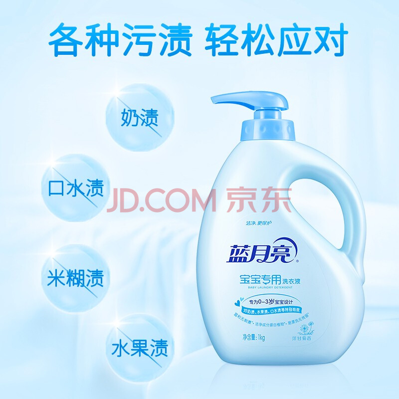 商品相册:蓝月亮 婴儿洗衣液 洋甘菊香 1kg瓶 儿童宝宝专用 亲肤温和易漂安全第