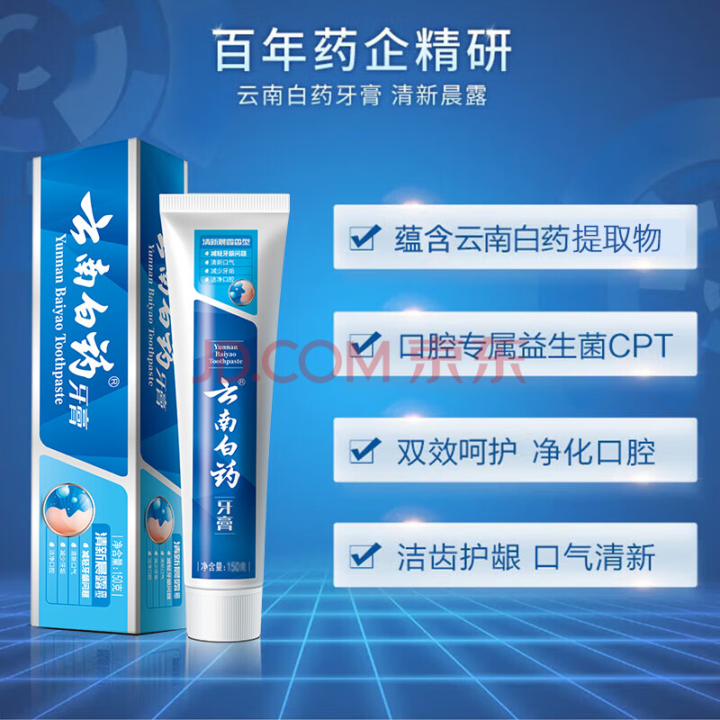 商品相册:云南白药经典系列牙膏 清新口气洁齿护龈 双重养护牙膏清新晨露香型100g第