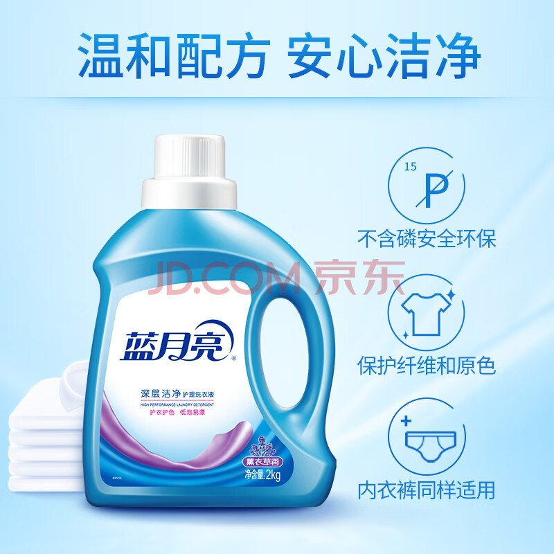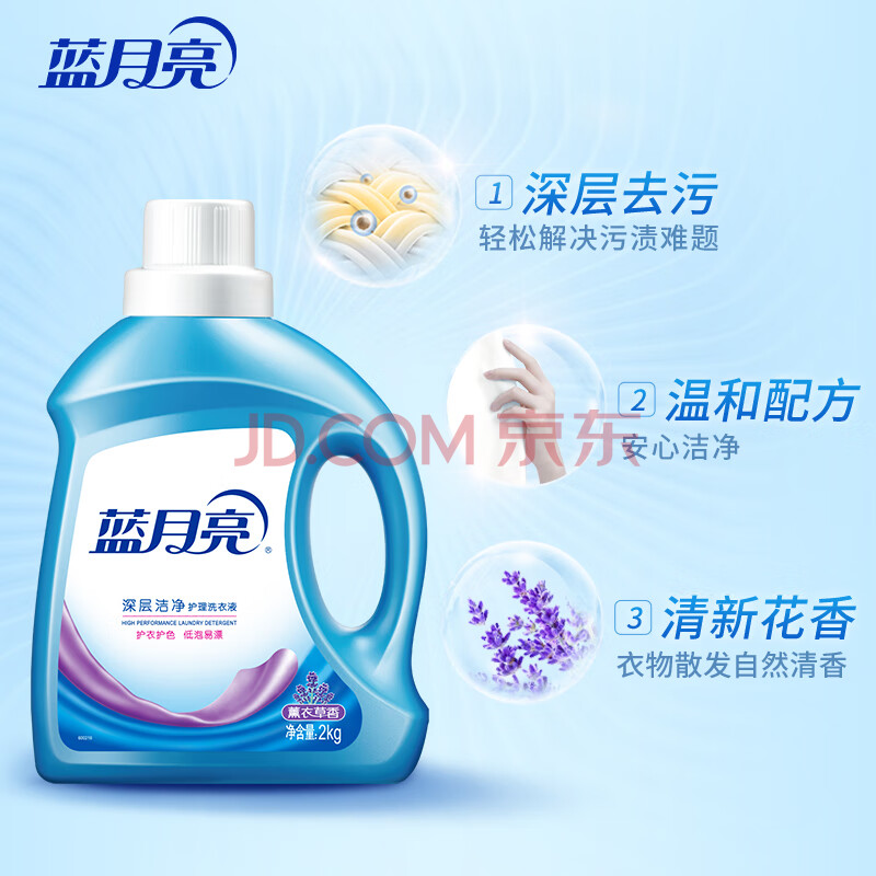 商品相册:蓝月亮 深层洁净洗衣液 薰衣草香 2kg/瓶 高效除螨 强效去污第