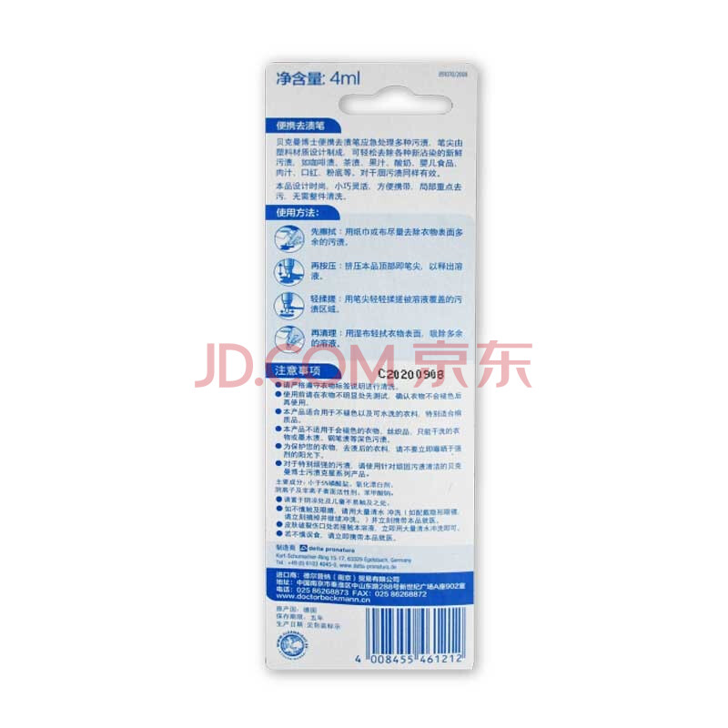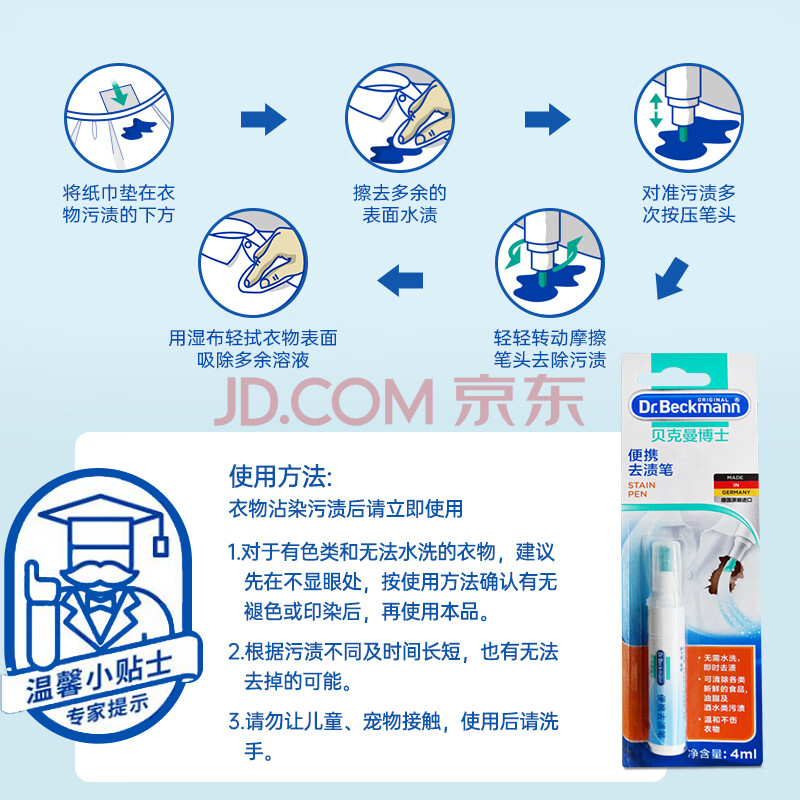 商品相册:贝克曼博士(Dr.Beckmann)便携去渍笔4ml 免洗去油污羽绒服干洗剂去油渍清洁剂德国进口第