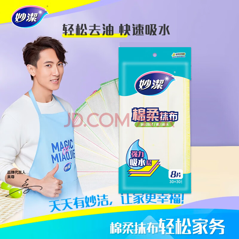 商品相册:妙洁 棉柔抹布 30*30cm8片装 厨房洗碗布强力吸水巾 擦拭疏油家用神器第