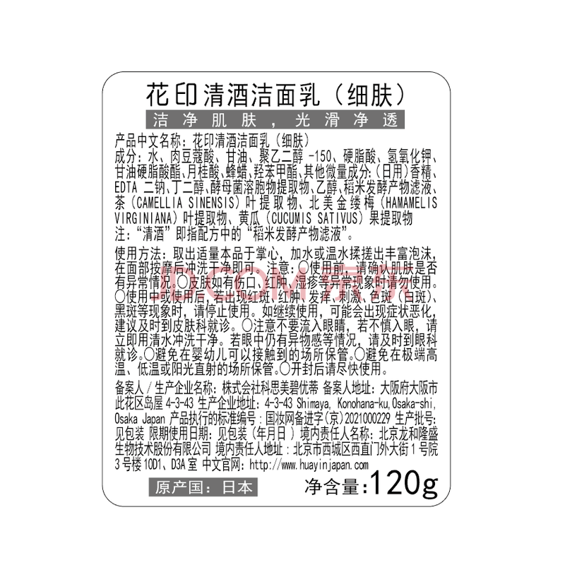 商品相册:花印清酒洗面奶120g 洁面温和清洁洗面奶男女士保湿控油泡沫第