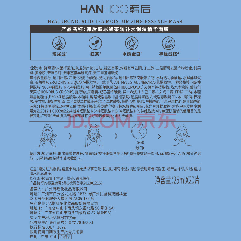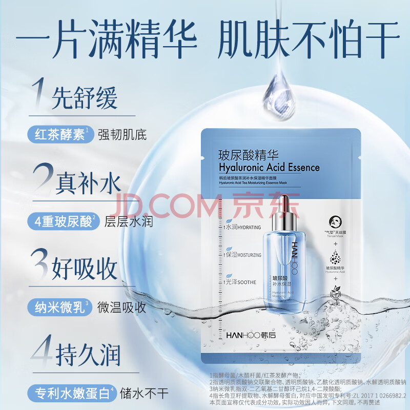 商品相册:韩后面膜 玻尿酸茶润精华面膜20片 补水保湿舒缓清洁提亮 护肤品男女第